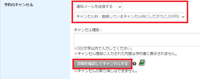 ・予約者へキャンセルの通知メールを送信するか
